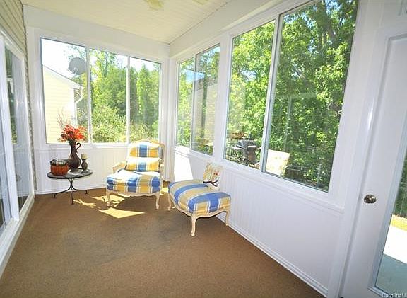 FRESHLY painted all interior and BRAND NEW carpet! Move in ready,well maintained charming Gray Myst on premium wooded PRIVATE cul-de-sac lot!!Open floorplan with abundant light! Newer hardwood floors, newer roof,home pressure washed,windows and screens cleaned,& trim freshly painted.Features a SUNROOM for relaxing that can be used as screened porch!,3 bedrooms or 3rd bedroom study option. Large walk in closets & tiled baths.Large kitchen w/ SS app and built in desk!Walking distance to shopping!