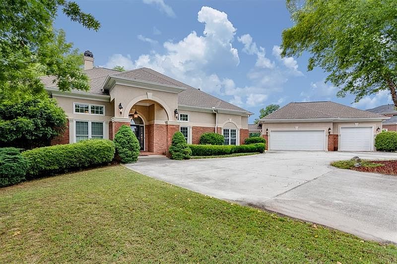 Beautiful custom built ranch on fully finished basement nestled on private lot with circular driveway & inground pool! 4-car garage includes 3-car detached garage w/entry to main level & 4th car garage w/separate driveway & private entry to basement level. High ceilings thru-out main level. Open plan with separate dining room capable of sitting 12. Fireside family room w/stacked stone fireplace surround & custom built-ins overlooks sunny kitchen w/breakfast bar, bayed breakfast area, additional transom windows & double ovens. Separate office/library w/custom built-in wall of bookcases. Awesome screened porch off family room overlooks private serene property & custom built pond. Split bedroom plan w/oversized secondary bedrooms each w/private bath w/tile. Owner's suite w/bayed sitting room, double trey ceilings & en suite w/his-n-her vanities, tile floor, separate shower & tub & large walk-in closet. Fully finished basement boasts large flex space w/half bath, exercise room, bonus room/bedroom with direct access to large full bath, kitchenette & storage area. Fenced in-ground pool w/large decking area.