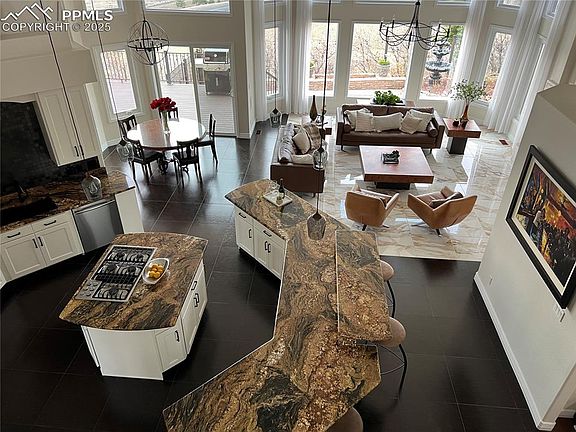 Discover the epitome of luxury living in this spectacular 5,600 square foot estate, nestled in the coveted Talon Ridge neighborhood within the prestigious Peregrine community. Designed with an impeccable layout, this home boasts 6 spacious bedrooms and 5 bathrooms, offering unparalleled comfort and style. One of the standout features of this home is its two massive master suites—a rare luxury. The upper-level master suite spans the entire floor, providing a private sanctuary with stunning mountain and city views, while the main-level master suite offers direct access to the outdoor spaces, ensuring seamless indoor-outdoor living. Perfect for multi generational living. Additionally, there are three more generously sized bedrooms and a music/office on the main level The open-concept design showcases a beautiful chef’s kitchen, complete with top-of-the-line appliances, custom cabinetry, and a spacious island, perfect for preparing gourmet meals or hosting friends and family. The adjacent family room features soaring ceilings and expansive windows that frame breathtaking views of the mountains and city, creating a light-filled, inviting space that blends luxury with comfort. The walkout basement is a true extension of the home, offering a large living area that’s ideal for entertaining or relaxation. The space is complemented by an additional large bedroom and bathroom, providing a private retreat for guests or family. A custom wine room for wine enthusiast is included. Step outside and indulge in the extraordinary outdoor living this home offers. A massive 20x30 composite deck provides ample space for entertaining and relaxation, while beautifully landscaped gardens, paver patios, and a hot tub overlooking unobstructed views create the perfect setting for enjoying Colorado’s natural beauty. This home truly exemplifies a rare combination of luxury, functionality, and privacy, with every detail crafted to elevate the living experience.