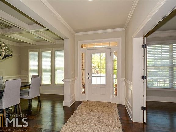 Spacious 'Kendrick' offers 5 BR, 4 BA, private living room/study in French doors and lg. formal dining RM w/coffered ceilings, junior suite on main floor w/full bath and walk-in closet, spacious gourmet kitchen with SS double wall ovens, cooktop, granite, tile backsplash, hardwood floors, walk-in pantry, huge island overlooks FR w/10ft. ceiling, stone FP and built in cabs. Gorgeous master with 3 more large secondary BR's up, laundry up. Side entry 3 car garage, 3 sides brick, patio w/outdoor FP.