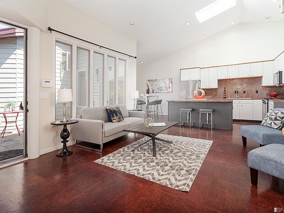 Discover a cool retreat in the heart of Jingletown close to the Oakland Estuary and Alameda's Park Street shopping district & Nob Hill Foods. Behind a lush, sheltered courtyard this lovely 1,700 sq. ft. 2+ bedroom, 2 bathroom home also has a ground level flex space (artist studio / home office?) with open floor plan & separate entrance. One of just 6 condos in the gated community, the unit boasts in-unit laundry, oversize windows, high ceilings, polished concrete / wood floors & parking. The modern kitchen has an island and stainless-steel appliances. The two full bathrooms have stone tiled shower/tub and contemporary fixtures. Close by transport options include Fruitvale BART, buses and access to I880. Oakland airport, Amtrak and ferries from either Alameda or Jack London Sq. are also very accessible from this great location.