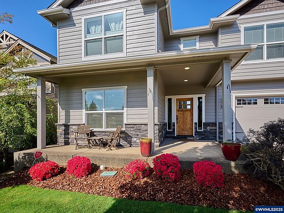 Stunning 5 bedroom home in West Salem's Chandlers Estates. The custom kitchen has a large island, gas cooktop, pantry, and eating bar. Spacious master, gas fireplace in the living room, great storage options, tankless hot water heater and central vac too! The large garage holds 5+ cars, a 2 post 10,000lb Bendpak car lift, washer and dryer hookups and a sink. The backyard is fully fenced with a covered patio and hot tub ready. The HOA clubhouse includes a pool, library, gym and gathering room with kitchen.
