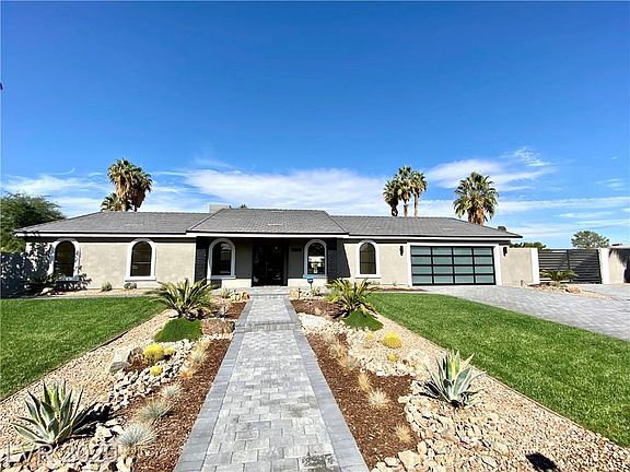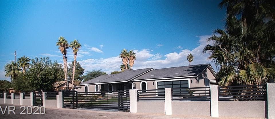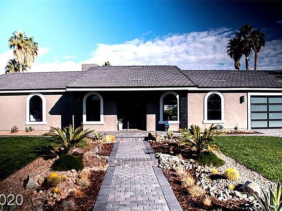 This stunning & privately gated single-story retreat with its very own "PICKLEBALL COURT" boasts a Spanish modern facade, custom designer finishes, the highest attention to detail and fully renovated. Designed by LA-based Celebrity Designer Julee Ireland. This open concept, 4 bedroom 3 1/2 bath home sits on 1/2 an acre. Interior features include professional-grade appliances, quartz & stone countertops, luxurious spa-like bathrooms, European windows, smart window in master ba, stacked sliding door, palatial kitchen island with seating, shaker cabinets, butlers/pantry, breathtaking bar, formal dining, fireplace, laundry room, dazzling lighting & hardware. An entertainer's dream w/a pool, spacious patio, gorgeous urban garden. Prime location 10 minutes from the Las Vegas Strip, close to freeways, shopping & award-winning Las Vegas Day School & Corner Stone School. Elaine Wynn Charter elementary and middle school and Clark high school where Jimmy Kimmel attended. Truly an Oasis!