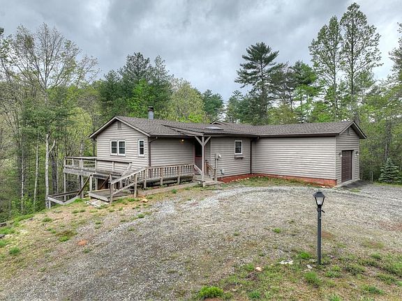 Nestled amidst 8.1 acres of serene, wooded landscape, this privately situated home offers both comfort and potential. Featuring a spacious open concept split floor plan offering a great room with cathedral ceiling and fireplace. The residence boasts two bedrooms each with its own en-suite bath, ensuring privacy and convenience. The home is complemented by an enclosed four-season porch and an open deck that provides a perfect vantage point to enjoy the tranquil views of forest and wildlife. Recent upgrades include a nearly new HVAC system, a brand new roof, along with newer windows throughout the house, enhancing energy efficiency and aesthetics. The unfinished basement presents an exciting opportunity for storage, a workshop, or future living space expansion. Additionally, the single-car garage adds to the property's practicality, making it an ideal haven for those seeking peace and versatility in their living environment. The 8.1 acres adds future investment opportunities as it may be possible to subdivide the property with no subdivision restrictions against it. Great location just 10 minutes from Blue Ridge, hiking/mountain biking, and even closer to Lake Blue Ridge!
