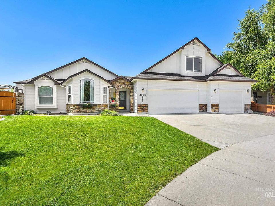 Come see this spacious single level home with beautiful curb appeal and an upstairs bonus room with half-bath. This home is nestled in a quiet cul-de-sac neighborhood and has the space for all of your needs. This 2198 sq ft home has a 3-car garage, vaulted ceilings, large master bedroom/bathroom and lots of natural light pouring into it. The floor plan is a split bedroom design with the master separate from other bedrooms. The large backyard has a covered patio with a corner fire pit area, waterfall and stamped concrete pad for a future gazebo. Comes with the kitchen refrigerator and storage shed.