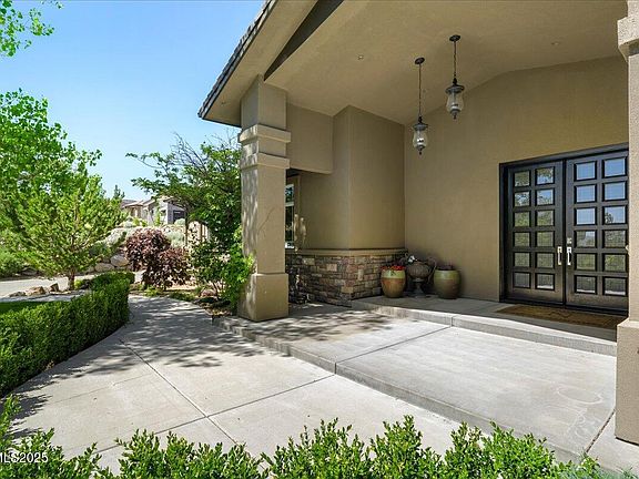 Premium Location in ArrowCreek! This exquisitely renovated custom home enjoys golf views of the 18th fairway, sparkling city lights, scenic Mount Rose, and the privacy of 1.7-acre adjacent common area. Desirable single-level living with the primary suite and two bedrooms on the main floor with two additional bedrooms and a family room w/ kitchenette downstairs. Just minutes from the gated entrance and the ArrowCreek Club & Residents’ Center amenities. Perfect blend of contemporary luxury and accessibility!, Located in the heart of ArrowCreek, this stunning custom home offers single-level living with the primary suite, open kitchen, large pantry storage, formal dining, voluminous great room, two bedrooms, two full baths, and laundry all on the main floor. The comfortable lower level includes a bedroom suite, guest room, full bath, and family/recreation room with fully-equipped kitchenette. The gourmet kitchen is appointed with granite slab countertops and upscale Bosch, Thermador, KitchenAid, and Sub-Zero appliances, including two ovens, dual dishwashers, warming drawer, ice maker, and beverage refrigerator. Formal dining room offers sophisticated entertaining with interior stonework and adjacent wine closet. Primary Suite with spacious sitting area, gas fireplace, patio access to hot tub, renovated bath, and walk-in closet with substantial custom built-ins. Exceptional interior and exterior storage, including a heated storage room with attached dog run. Outdoor options abound, with wrap-around veranda and built-in BBQ on main level, with a large covered patio and expansive backyard below. Residents of ArrowCreek enjoy access to a host of amenities at the ArrowCreek Residents’ Center, including a community pool complex, tennis and pickleball courts, a basketball court, a fitness center, playgrounds, BBQ areas, an open lawn with a surrounding par course, and miles of walking trails. The Club at ArrowCreek recently underwent a remarkable $70 million expansion, offering 36 holes of championship golf, elevated dining experiences, pool amenities, a state-of-the-art fitness center, a driving range, putting greens, chipping areas, bocce ball courts, special event spaces, and a variety of clubhouse activities. While this sale does not include a membership, potential buyers can inquire with ArrowCreek’s Membership Director for membership options and availability. ArrowCreek is a private, gated golf course community with 24-hour manned security. Conveniently located just 20 minutes from Reno-Tahoe International Airport and Mt. Rose Ski Resort, and a scenic 35-minute drive to the stunning shores of Lake Tahoe.
