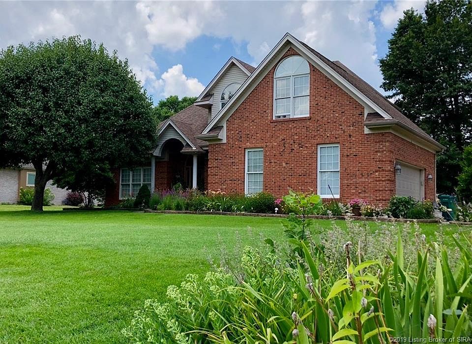 Beautiful Southern Estates Home in Award Winning New Albany/Floyd County School System. This large Brick home features 6 Bedrooms, 4 Bathrooms (2 Full, 2 Half-baths) and over 4200 finished sq feet. The first floor has a MAIN FLOOR MASTER Suite with dual walk-in closets and ensuite bath. The Great Room with soaring cathedral ceilings and a three-sided GAS LOG FIREPLACE features French Doors to the back deck and is open to the LARGE Eat-In Kitchen with SS Appliances, glass backsplash and breakfast bar, just off the large laundry/mud room with half bath. Upstairs there are 3 LARGE BEDROOMS and a Full Bathroom. You'lll LOVE the full finished basement, perfect for a Home Theater. This huge space includes a kitchenette, two large bedrooms (no egress small windows), half bath and room for a family room, office, gym or whatever your heart desires. The house has LOTS OF STORAGE with extra room in the basement plus many Large Closets on every floor and an oversized attached garage. Enjoy the deck, perfect for entertaining, quiet nights watching the sunset or gatherings of any size. The fenced back yard can be expanded (see lot lines for extra back yard space) for added enjoyment. This home features a newer roof (4.5 years), newer HVAC (6 years), newer appliances (2 years), dual sump pumps with Water Commander back up, oversized driveway, gorgeous landscaping with wildflowers, seconds from shopping, restaurants, entertainment and so much more, it'll give new meaning to Home Sweet Home!