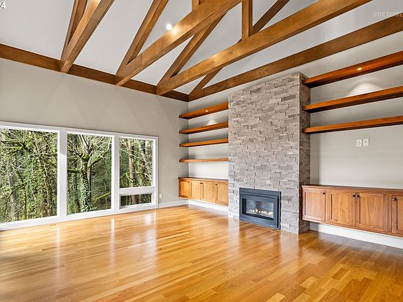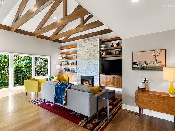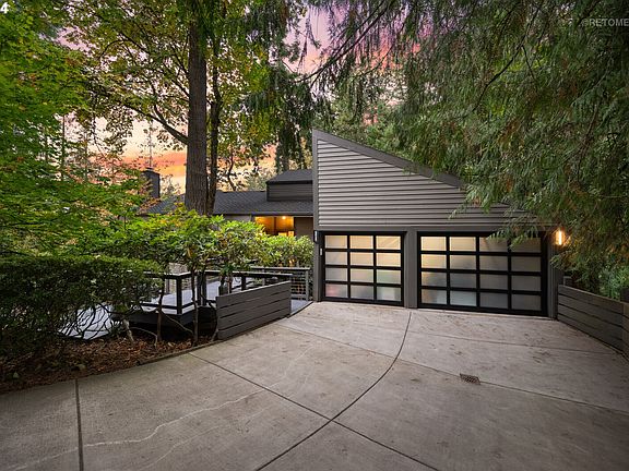 Just in time for the holidays, this beautiful home can be yours! Welcome to a Midcentury Modern Masterpiece nestled in the coveted Hewett Park Estates! Experience your own private oasis tucked away amidst lush trees and beautifully landscaped terrain, perched on nearly half an acre. Yet, you're only minutes away from the bustling city life!This home has been entirely restored, down to the studs with exquisite craftsmanship and high-end finishes throughout. Step into a grand living space boasting dramatic vaulted ceilings, extensive exposed beams, and walls of windows that reveal your own private forest scenery. Gather with loved ones in the cozy family room centered around a gas fireplace with a striking stacked stone surround, perfect for those holiday family gatherings. The gourmet chef's kitchen is ready for your culinary creations, featuring a Wolf range, Sub Zero fridge, an expansive island, and a butler's pantry with a wet bar. Designed for comfort and luxury, the primary suite offers main-level living. Also, conveniently on the main is an office and laundry/mudroom. while a secondary ensuite is perfect for extended guest stays. For those with an electric car there is a Tesla EV charger in the oversize two car garage. Outdoor entertaining becomes a delight with multiple living options including a private pool, sauna, hot tub, and three additional decks to soak in the serenity of nature. If you're seeking that cool midcentury vibe combined with the convenience of city proximity, look no further. Just a 10-minute drive brings you to the finest restaurants, shopping, downtown attractions, OHSU, Nike, Council Crest Park, Washington Park, trails in Forest Park, Oregon Zoo and easy freeway access. Also close to Caitlin Gable High, Oregon Episcopal School, and Jesuit High School. This home offers the perfect blend of a private retreat while enjoying the perks of urban living. Live every day like a vacation in this enchanting sanctuary!