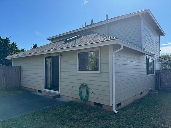TWO units!! NEW ROOF!! The main unit is a 3 bedroom, 1 1/2 bathroom home, 1330 sq ft, with an attached 2 car garage with direct access into the house. Washer / dryer connections in the garage. It has a slider from the dining room to an east facing BBQ patio and it's own fenced yard. Amenities like skylights, dishwasher and pantry closet in kitchen, understairs closet and a finished garage. Upstairs bedrooms have a peak of the ocean. Primary bedroom is spacious. This is currently rented for $1995 per month.