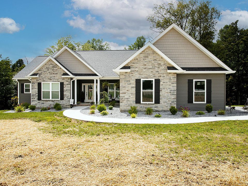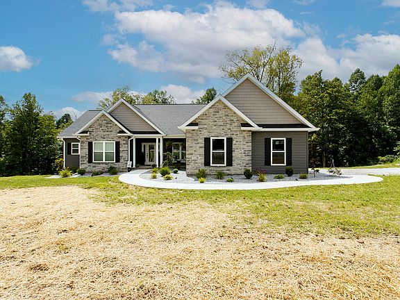 Wow! A must-see, stunning country home! Just built in 2021 with 4000 square feet of space. The home features beautiful landscaping, 4 bedrooms, 3 full bathrooms, a separate office space, beautiful hardwood and tile floors, granite countertops, wood burning fireplace, a 500sq ft attached garage, and much more! The main level primary bedroom suite has a large walk-in closet and full bathroom featuring a gorgeous freestanding soaking tub and a heated tile floor on a programmable thermostat! Relax on the covered front porch or covered back deck and enjoy the views and sounds of country living. You'll find plenty of additional space in the full, partially finished basement which offers one of the bedrooms and a full bathroom. The basement also has great potential to add additional living space and already has the plumbing prepared for another full kitchen if desired. With loads of square footage and many possibilities, you don't want to miss this lovely home!