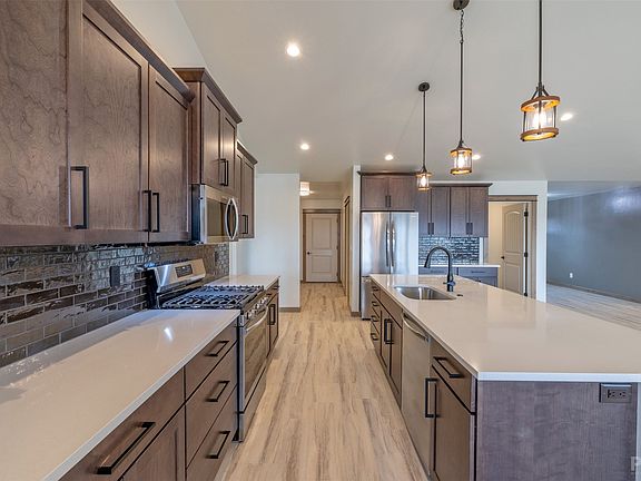This distinctive floor plan has plenty of room to roam! Beautifully contemporary design, paired with custom cabinetry, granite countertops, open floor plan and stunning touches throughout. Solid wood trim, air conditioning, large windows allowing for tons of natural light, storage galore, calming color pallet and impressive tile detail throughout. Once in the primary suite the dual sinks, zero entry shower and large walk-in closet will have you feeling right at home. The kitchen boasts plenty of space, walk in pantry, impressive lighting, gorgeous tile backsplash, and even a farmhouse style sink. Enjoy doing laundry again in the spacious laundry room. Outside enjoy two different covered patios and views from every direction.