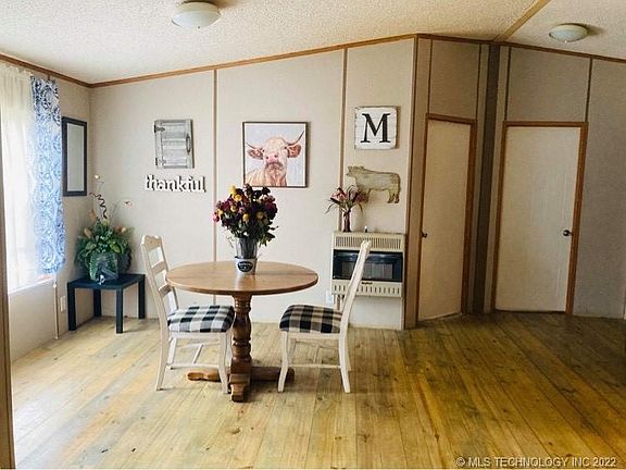 10 acres of mostly wooded land with a home. The home is a 1532 square ft double wide. Consists of 3 Bedrooms, 2 baths, and open concept. Has a partial wrap around porch with one side overlooking pond. Deer, turkey, and hogs on property. Nestled off county road for privacy. Features storm shelter and storage building. Don't let this pass by without taking a look.