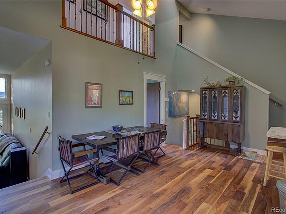With views of the lake, this Eagles Nest townhome is an amazing opportunity to live in the growing Stagecoach community. The classic lodge style layout offers abundant lighting through large double stacked windows in all north-facing rooms with views of the state park reservoir. The 3 bed 2 bath home has 5-inch solid walnut floors throughout most of the main floor, stairs and upstairs hallway. Modern amenities including dishwasher, washer/dryer, stovetop/microwave and a real wood-burning fireplace that helps to heat the home in the winter months. The 4 different levels and stacked architecture give each space its own character and charm. Updated counter-top, sink and appliances give the kitchen a fresh feel. This home is unique to the development and has 300 sqft more finished area than most of the other townhomes in the complex, ready for a workshop, additional bedroom, or whatever you can imagine! Lots of extra storage in the large laundry room. As always with Eagle's Nest, maintenance-free living is yours as the affordable HOA covers any exterior maintenance from snow removal to lawn care. Just minutes away from the Stagecoach State Park, limitless adventures are outside your doorstep.