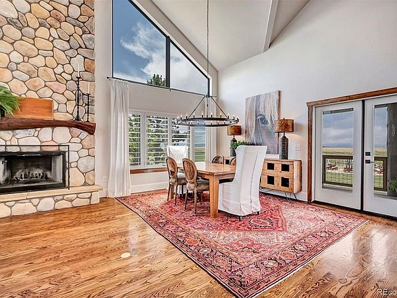 - Description: Mountain Views Including Pikes Peak, Refurbished Floor-To-Ceiling River Stone Fireplace With Natural Beam Mantle, Two-Story Ceiling With Natural Beam, Refinished Wood Flooring Throughout, Large Picture Windows, Plantation Shutters.