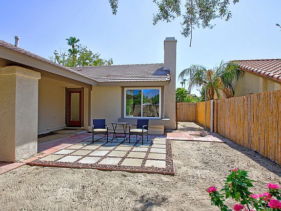 ALL FRESHENED'UP & Ready to Move In! Bright Open Tiled Living Area with Fireplace and vaulted ceilings. Western Mountain Views from Private Gated Courtyard & Patio Area. Located on Quiet inner Street near Landau Elementary School. Master Bedroom with glass slider to rear yard, walk-in closet and private bath featuring double sinks. 2 Bedrooms off hallway and 2nd full bath. 2 Car garage with direct access through large indoor laundry area. Simple low-maintenance fenced yard offers patio and planters. Upgrades include complete kitchen, bathroom counters, HVAC System and dual pane glass sliders and most windows, auto garage door opener, and much, much more! NO HOA and Fee Land!