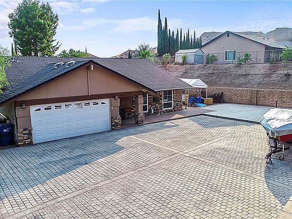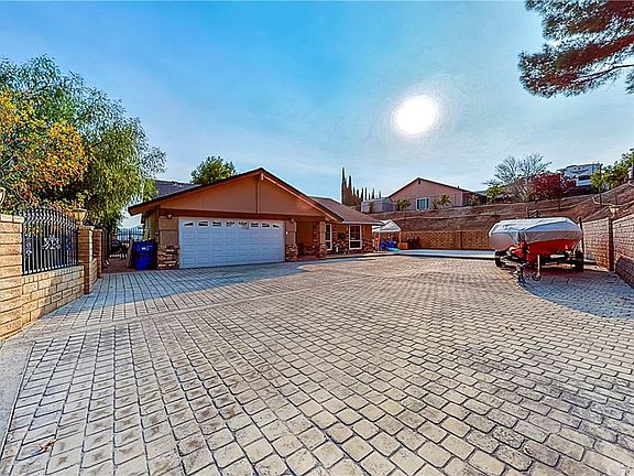 Welcome home to this beautiful SINGLE-STORY VIEW HOME. This Timberline tract home shows true pride of ownership and has been fully remodeled. Home has great open floor plan with large family room featuring a beautiful brick fireplace and custom wooden hearth. This home features newer wood tile flooring upgraded ceiling fans and lighting, and a fresh coat of paint inside. The farm style kitchen comes with stainless steel appliances, granite countertops, and is open to the family room area and dining area making this a great space for the family or entertaining. Both full bathrooms have been upgraded with newer vanities, countertops, lighting and cabinetry. The exterior of the home has been updated with stone features, a great front porch area as well. Newer A/C and new carpet and new garage door opener as well. With an approx. 14,000 square foot flag lot there is room for expansion, parking of RV or boat and several cars. The drive way is cobblestone lined with great wrought iron fencing detail. The backyard has been fully landscaped with a concrete and covered patio area, upgraded fencing featuring beautiful wrought iron and block walls . There is a large shed with power for storage included as well. This home has so much to offer, located in a quaint neighborhood in Santa Clarita, close to the 14 freeway for commuters in an Award winning school district. It is truly a great place to call home! You will want to see this home quickly as it will not last long!
