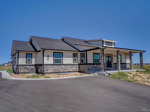 Price improvement! Brand new home on 1.7 acres!This beautiful brand new ranch home is waiting for you! The new Country Club Ranchettes subdivision is a high end acreage community located just a few miles east of Brighton. This home features an open floor plan, with spacious Great room, kitchen, and dining area. The gourmet kitchen features quartz countertops & backsplash, and a beautiful oversized island. Stainless appliances, vent hood, double sinks and a huge walk-in pantry. The adjoining Great room offers a cozy electric fireplace featuring a full stone fireplace surround. The primary suite offers an exterior door to the back covered patio, and is connected to a large primary bathroom, featuring an oversized vanity w/makeup table, oversized shower, and a finished walk-in closet. The bedrooms are split to enhance privacy, with the primary bedroom separate from the two secondary bedrooms on opposite sides of the home. The office is located at the front of the house and doubles as a 4th bedroom. Country Club Ranchettes does not have an HOA, but does have reasonable covenants and design guidelines to enhance the beauty of the community. Bring your animals! 2 horses, 2 goats and chickens are allowed. RV parking and commercial work truck parking is allowed. Outbuildings are allowed, refer to the covenants for allowable size etc. Water is provided by Great Rock Water tap. Natural gas supplier is Xcel (no propane), and wired internet is available with Comcast. The full basement is available for your future expansion. Don't miss out on the opportunity to make this your new home!