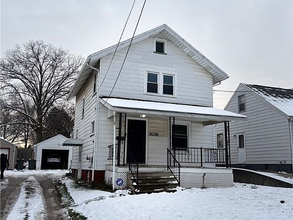 Call to tour a home that truly has it all—where the character of a bygone era meets the comfort of modern living, all in an unbeatable location. Step onto the welcoming covered front porch & imagine your mornings with a cup of coffee, greeting the day. As you enter, there is natural sunshine pouring through the newer windows, illuminating the beautiful and original oversized woodwork that frames the spacious living & dining rooms. These are rooms made for making memories, from quiet evenings to lively gatherings. The kitchen features a wonderful conversation piece: an original, very retro kitchen sink that adds a unique touch of nostalgia & charm. And for the visionary buyer, know that beneath the carpets lie gorgeous hardwood floors just waiting to be revealed and restored to their original glory. Upstairs, 2 generously sized bedrooms offer peaceful retreats, served by a full bathroom. The upper hall boasts a stunning & practical original built-in cabinet with drawers—a feature you simply don't find in modern homes, offering both history and extra storage. The surprises continue downstairs. The full basement provides a fantastic blank canvas for a workshop, gym, or hobby space, complete with an add'l shower stall & ample storage. The included water softener system is a valuable bonus that stays. Outside, there is a detached single-car garage and shared driveway handle your parking needs with ease. Location is Everything! This home isn't just a place to live; it's a key to a convenient lifestyle. You are moments away from popular restaurants, parks, premier hospitals, and easy highway access. Everything you need is just a short trip away. This is more than a house; it's a lovingly maintained home filled with potential and waiting for its next chapter. Your private tour awaits. Call today to see it for yourself!