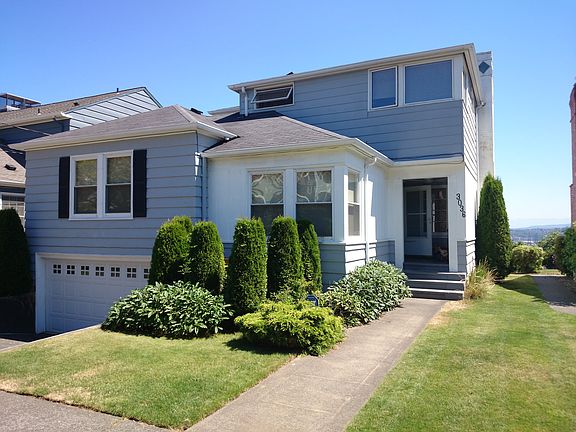 Sweeping views of Seattle and Cascades from Baker to Rainier! Nicely maintained 1938 Belvedere home offers tile entry, formal living and dining both on the view, graceful fireplace, gleaming hdwds. Open kitchen with vaulted ceiings, oak cabinets & corner view nook plus top floor master with view deck, sitting room, den or office nook, walk in closet and 5 pc. bath were added thoughtfully in 1992. 2 generous main floor bedrooms & vintage tile bath, lower level knotty pine family room, 2 car gar.