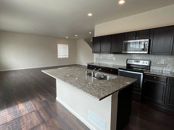 Incredible home in northeast Loveland! This beautiful property features stunning dark wood floors throughout the main level, an open family room, and a large deck that leads to a generous backyard. The kitchen is equipped with solid surface countertops, a walk-in pantry, and stainless steel appliances. The primary bedroom includes a walk-in closet and a private five-piece bathroom. Additionally, there is a loft area perfect for a home office. The laundry room is conveniently located on the second floor, and there's an unfinished walk-out basement for extra storage. NO STUDENTS