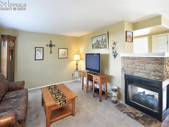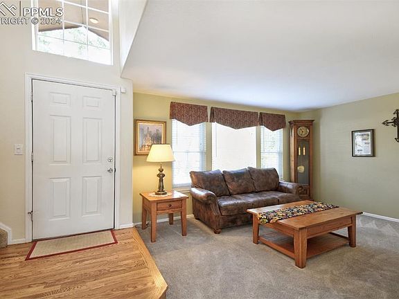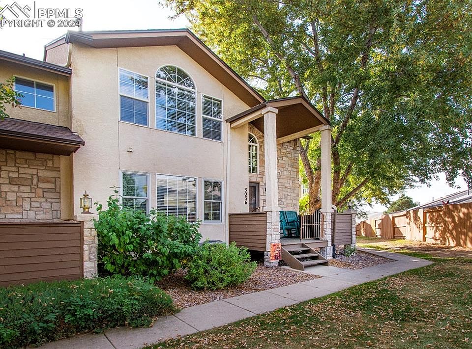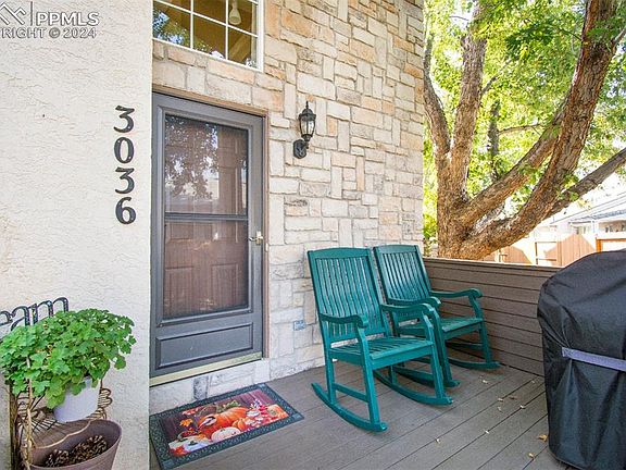 Discover this beautifully appointed end unit in the sought-after Broadmoorings neighborhood! This 3-bedroom, 3-bathroom home features an open floor plan that floods the space with natural light, framed by mature trees and breathtaking views of the Front Range.As you step inside, you'll be welcomed by warm hardwood floors and soaring vaulted ceilings in the spacious living room, complete with a cozy gas fireplace. The kitchen features Corian counters and stainless steel appliances, seamlessly integrated with the hardwood flooring.Conveniently located on the main level, a bedroom is just steps away from a full bath with a tub/shower combo. Enjoy easy access to the outdoor deck and front porch, both offering tranquil settings perfect for relaxation.Upstairs, you'll find a versatile loft/bedroom with vaulted ceilings, stunning mountain views, and an adjoining three-piece bath. The master retreat is a true sanctuary, boasting vaulted ceilings, his and her closets, and a luxurious five-piece bath.This home also includes ample storage and a generously sized two-car garage, along with access to a community pool and clubhouse. Located just minutes from the Broadmoor Hotel, Fort Carson, and nearby shopping, this property is a must-see! Don’t miss your chance to make it yours!