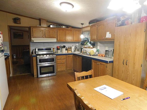 Well cared for manufactured home with wrap around porch and newer metal roof. The property sets on 3.75 acres nestled in the trees. Barn with goat stalls and a pasture is ready for your 4H Friends. The home has 3 bedrooms, 2 baths. If you are looking for a private area for your family to enjoy, this might be what you are looking for!