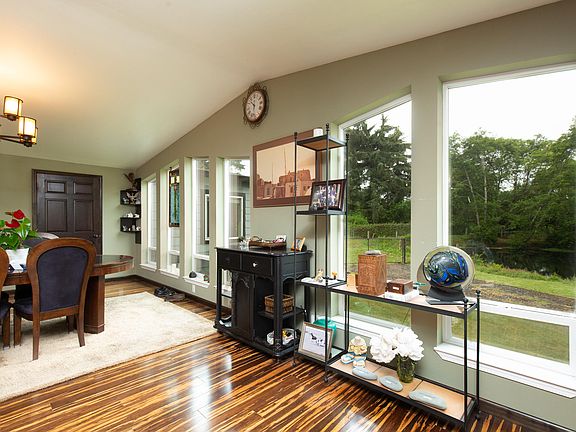 Prefab home was built 4 years ago and sits on 1.5 acres.This house sits on a permanent foundation 3bd/3ba, 2 masters, walk in closets, gas fireplace, bamboo flooring, laundry room, 600 sqft Trex deck on the front of house, private patio in back, pond with trout for the Egrets and ducks that stay year around. Electric gate to the property is solar powered, Horse pasture, approx. 12'x18' barn style shed, 2 car garage. soffit ceiling in living room, recessed lighting in kitchen, kitchen island dining room. This home is beautiful and well cared for. Most of the furniture is gone but some still remains. Owner will come and get if buyer does not want. This is not a trailer.