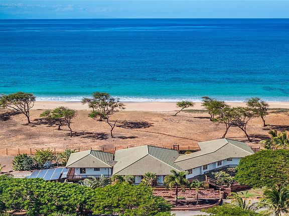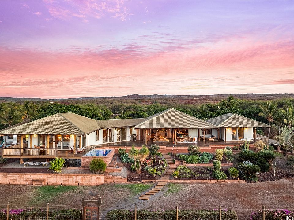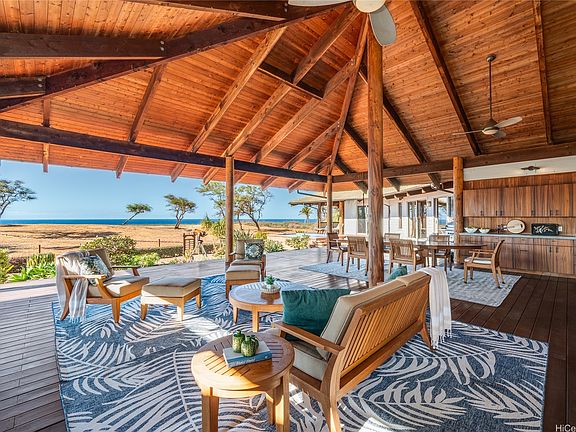 Experience the serenity of true beachfront living at 3036 Kalua Koi Way, an exceptional Molokai estate on nearly six acres along Papohaku Beach. Blending elegant Japanese-Hawaiian design with seamless indoor-outdoor living, the property includes a main oceanfront home with two primary suites and 2.5 baths, plus a separate two-bedroom, two-bath guest house. Enjoy a heated saltwater pool with cabana, a detached 3-car garage with bonus room, and a fruit orchard. Interiors showcase Sapele wood, bamboo floors, Fleetwood doors, and Ipe lanais framing panoramic ocean views. Powered by photovoltaic solar and fiber internet, this sustainable retreat offers luxury, privacy, and modern comfort—an antidote to modern hustle and a return to a more conscious way of living.