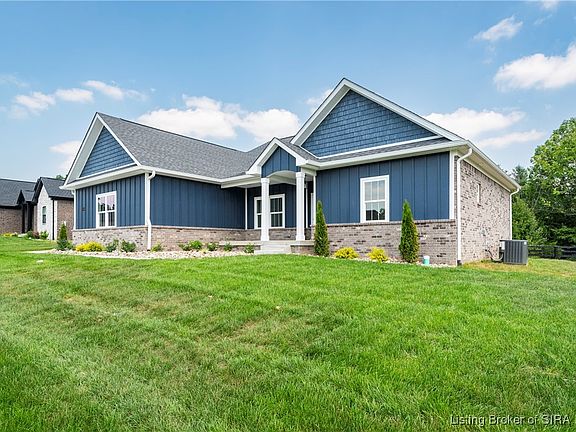 Exclusively built by WITTEN BUILDERS, Family Owned, building for OVER 40 Years, QUALITY you can SEE and TRUST! FABULOUS FLOYDS KNOBS ADDRESS, Incredible LOCATION near Highlander Pointe across from Valley View Golf Course. AWARD WINNING FLOYD CENTRAL SCHOOLS! Fantastic RANCH Plan, 5 Bedrooms, 3 FULL Baths, 3 Car Tandem Garage, and FINISHED BASEMENT! Beautiful Brick, Stone/Hardie Exterior, TONS of CSTM FEATURES. COVERED FRONT PORCH and COVERED BACK DECK! OPEN Foyer, Lrg OPEN Great Room, 11 ft Ceilings, HIGH-End Luxury Vinyl Plank Flooring, Gas FP. Lrg OPEN FORMAL Dining/Music Rm, Open, Expansive Eat-in Kitchen, SOLID WOOD CABS, Dovetailed Drawers, 8 Ft GRANITE ISLAND Serving Bar w/Seating, STAINLESS APPLS, HUGE Walk-In PANTRY! Split Plan, 3 Beds on Main floor, Owner’s Suite is Lrg w/ Luxury Bath, GRANITE Dual Vanity, CUSTOM TILE Shower, Separate water closet and HUGE CUSTOM Built-in Walk-in Closet! Beds 2/3 GOOD SIZE w/9 ft ceilings and BOTH have WALK-in closets!!! You don’t see that very often! Hall Bath with GRANITE and Luxury Vinyl Floors. FINISHED LOWER LEVEL, OPEN Rec Space, Corner Wet Bar w/Table Space, LARGE 4th and 5th Bedrooms (w/Egress) and FULL BATH! All WITTEN HOMES are Energy Star Rated, Insulated Garage doors, Delta Fixtures throughout, 2-10 Home Warranty and 1 Year Membership to Valley View Golf Course at closing! Hurry!