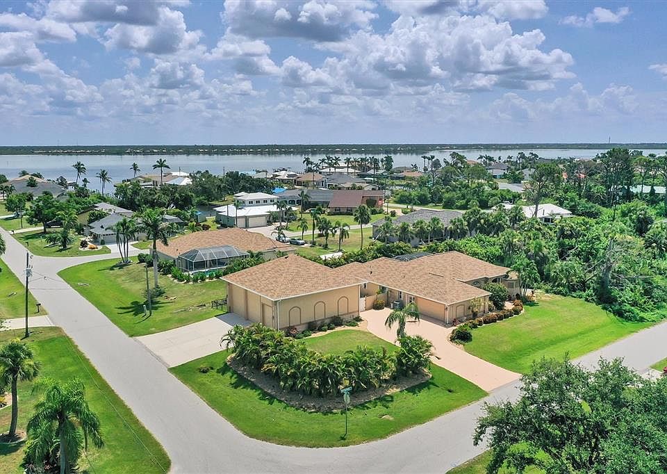 BEAUTIFUL, CUSTOM-built 3-bedroom/3-bathroom 2700sf under AC POOL home on 0.46 ACRE with 1600sf DETACHED GARAGE! This home aims to please with gorgeous touches and upgrades throughout the entire home. The home has decorative tile flooring and vaulted/cathedral ceilings throughout, including all the bedrooms AND bathrooms! The kitchen is gorgeous and roomy with both an island AND a breakfast bar, closet pantry, granite counter tops, stainless appliances with built-in oven and cook top, and over AND under-cabinet lighting to create just the right mood. The kitchen overlooks both the dinette/family room and the living room, which all have access to the pool, creating a wonderfully flowing atmosphere. The master bedroom is a roomy 13 x 20 ft, with two walk-in closets (one is beautifully built-out) and a large ensuite bathroom offering a jacuzzi tub, double entry roman shower, individual vanities along with a separate makeup vanity! The additional bedrooms and bathrooms are on the other side of the home. The guest bedrooms and additional bathrooms are privately located behind a pocket door. Both bedrooms are spacious at 12 x 13 with vaulted ceilings and large closets. Bedroom 2 has a handy built-in desk and bedroom 3 has an ensuite bathroom that also accesses the pool. There’s a bonus room up front with dual-pocket doors that could be used as a dining room, office, extra bedroom or craft room. Even the laundry room was well thought out with a built-in desk, cabinets, closet, utility sink and a folding table. The wood cabinets and countertops all flow beautifully throughout the home. Step out back to your heated, screen in pool with plenty of space to recline in the shade. Let the pooch out in the doggy run. Then tend to your toys in your 40 x 40 ft detached garage (actual interior space is approx. 38.5’ from garage door to back wall – Buyer to verify), with 3 bays, plenty of room for multiple vehicles, a workshop AND a second level hang out area. Definite possibility to have monthly income by renting out the bays for boat/RV storage if you don’t intend to use them yourself! The beautifully, tropically landscaped property is located in the popular boating community of GULF COVE in Port Charlotte, FL, situated along the tidal Myakka River, where you pop your boat in the water and are full throttle out to the Harbor and the Gulf. No HOA here but there is a voluntary Property Owner Association which, for a low annual fee, allows you to use the private boat ramp and manicured park. Watch the dolphin swim by and toss your line out for a passing snook or jack crevalle. We have hurricane shutters (accordion AND electric), a brand-new roof, a well for irrigation, reverse-osmosis water system in the kitchen, a 30 AMP breaker in the detached garage, and a perfect spot for your hot tub or fire pit! This is a MUST-SEE property; And it is ready and waiting for you!