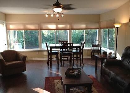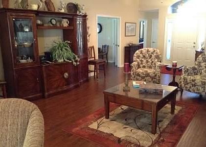 This beautiful home is located on a quiet cul-de-sac street. This home includes: Neutral colors, tile and wood laminate floors throughout, large tiled island kitchen with beautiful newer granite counter tops, cafe area with a lovely bay window overlooking the tranquil backyard. The delightful sunroom overlooks the private backyard .This home has a private master suite with a large walk-in closet and a great master bath with double vanities and a large walk-in tiled shower. The guest suite has a lovely window seat. The den could be used as a computer room or a third bedroom. Upgraded landscaping includes curbing in the front and back yards. Furniture package available. Must see!