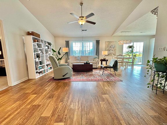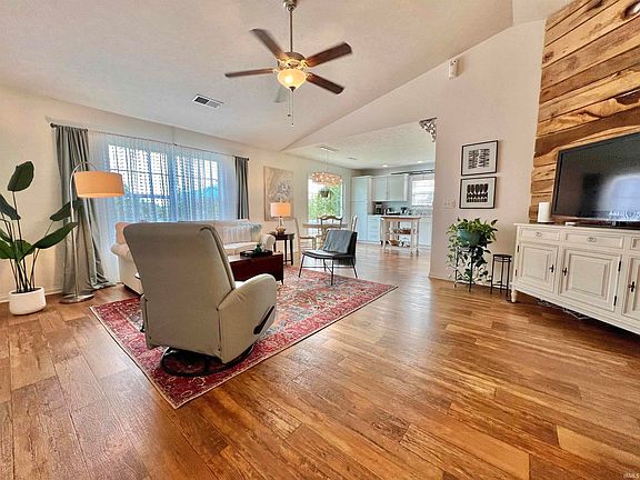 Welcome to this charming, move-in ready home located in a highly desirable Newburgh neighborhood. Featuring 3 bedrooms, 2 full bathrooms, and an attached 2-car garage, this property offers a functional layout with stylish updates. Inside find an inviting living room with vaulted ceilings that flows seamlessly into the dining area and kitchen. The kitchen is designed with crisp white cabinetry, stainless steel appliances, creating both style and convenience. The primary suite includes a spacious bedroom and full bathroom, while the additional bedrooms and second bath provide plenty of comfort and flexibility. Recent improvements include a brand-new HVAC system, adding peace of mind for years to come. Outside, you’ll enjoy a private backyard with a large patio, perfect for relaxing or entertaining, plus a hot tub for added enjoyment. Situated in the heart of Newburgh, this home offers convenient access to shopping, dining, parks, golf, and community schools. The area is experiencing steady property value growth and exciting new development projects, making it an excellent place to call home.