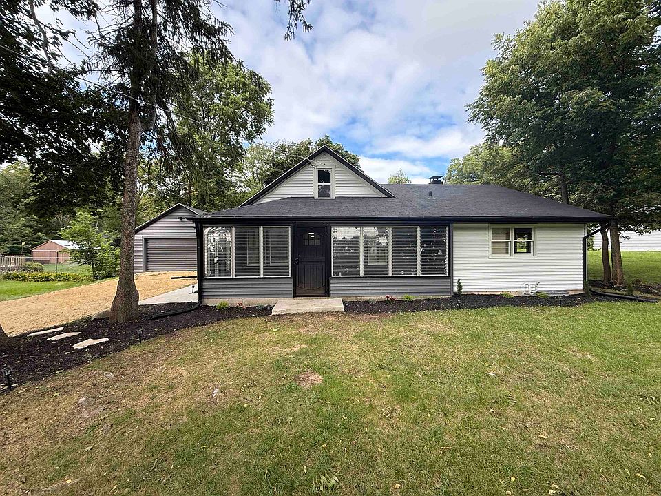 Fully renovated home on over an acre! Brand-new siding, windows, gutters, fascia, and soffits. Consistent luxury vinyl plank flooring flows throughout, paired with updated light fixtures for a warm traditional modern feel. Stunning new kitchen with all-new cabinets, soft-close doors, new countertops, single-basin sink, pull-out garbage can, garbage disposal, and stainless steel appliances. Indoor laundry with updated washer and dryer plus potential mudroom off the attached garage. Main bath features a quartz vanity top; both bathrooms fully renovated with premium Kohler toilets, new plumbing, and new electrical. Spacious basement offers endless possibilities. Furnace, condenser, and water heater replaced in 2020. Large backyard with mature trees, wooded area, and privacy on a secluded street with neighboring large property lots. Truly move-in ready!