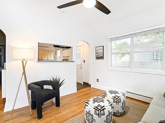 Modern interiors inspire in this inviting South Broadway Heights home. Beaming with stylish updates throughout, residents are greeted by new hardwood flooring that illuminates the home’s interior. A sun-drenched living area w/ large windows affords space for entertaining or cozy nights at home. French doors open into a bedroom ideal for a private home office or nursery. The kitchen charms w/ an arched doorway, abundant cabinet space and a wall-mounted dining table perfect for enjoying late-morning brunch. Retreat to an idyllic primary bedroom w/ an eye-catching slatted accent wall and sizable closet or flex space. A renovated bath boasts chic subway tile and contemporary vanity storage. Downstairs, a newly finished basement w/ a bath serves as a rec room or guest accommodation. Wander outdoors to the lush, fenced-in backyard where residents can plant their dream garden and enjoy sunny Colorado days. Situated one block from Broadway, this lot is conveniently zoned for an ADU.