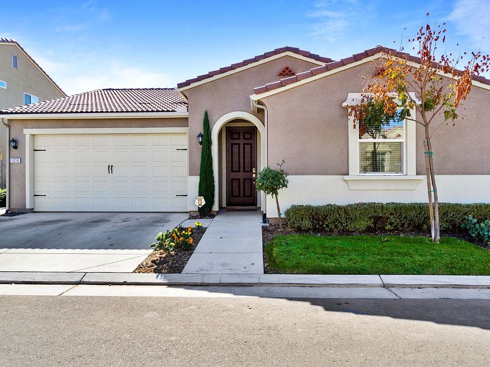 Welcome to your dream home in the heart of Clovis, CA. This spacious 3-bedroom, 2.25-bathroom home with a versatile flex room is designed for modern living. As you head inside, you'll be greeted by the large format tile that flows seamlessly throughout the home, providing both beauty and practicality. The heart of this home is the stunning kitchen, featuring white cabinets, a large kitchen island with exquisite granite countertops, white subway tile backsplash, and stainless steel appliances, The wood barn door in the master bathroom adds a touch of privacy, complementing the convenience of the double sink vanity and a spacious walk-in closet. The master bedroom, isolated from the others, provides the privacy you crave. This must-see property, built in 2020, also features a 2-car garage that includes wall mounted heavy duty steel shelving and a low-maintenance backyard oasis. Located within the highly acclaimed Clovis School district, this home is ready for its new owners. Don't miss the chance to call this Clovis beauty your home! Schedule a viewing today and enter into your future. Your dream home awaits!