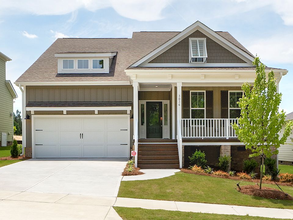 Benjamin A-This four bedroom, three bath ranch plan has everything you need! Large porch with gorgeous open entry leads to two bedrooms with a full bath on the right. Large gourmet kitchen with double ovens and gas cooktop, and leads into the family room with a cozy fireplace and an eat-in area. Sip your morning coffee or tea on your covered porch and enjoy a downstairs master suite and spa-like bath. Upstairs you will find the fourth bedroom and full bath along with a bonus room!