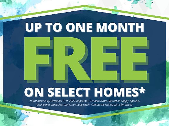 - Special offer! Up to Two Months Free on select homes! *Must move in by December 31st, 2025. Applies to 12-month leases. Restrictions apply. Specials, pricing and availability subject to change daily. Contact the leasing office for details.