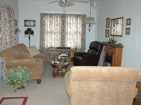 Lovingly cared for home on quiet street. Walk into a large room that could function as both a living room and dining room. There is a beautiful large built in china cabinet or bookcase with original curved glass. Kitchen has been remodeled with newer cabinets and all appliances will remain. Both bedrooms are large and the master has two closets. There is lots of storage in the utility room off of the kitchen. If you enjoy sitting outside in the morning or evening. both the front porch and back patio are covered and spacious. The detached garage can accomodate three vehicles. There is a single door in the front and a double in the back. The garage also has a nice shop with heat and air. Call today for your appointment to see this special home.