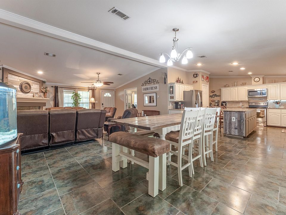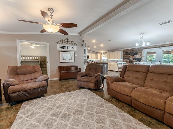 This home is sitting on 4.9 acres near I-12 & Juban, shopping, and Livingston Parish schools. Oak Creek custom built home with split floor plan. Three spacious bedrooms, two custom baths, 18”x18” ceramic tile flooring throughout so NO CARPET. Kitchen has slab granite countertops on counters and island (7.7’x3.0’), white painted cabinets with lots of storage space. Master bedroom opens up to master bath with french doors that features a separate shower, jetted tub and walk in closet. Ceiling fans throughout the home. Interior has handicap features. Outdoor patio for entertaining with kitchen and place to put your TV. RV Port with hookups 24’x32’ along with 3 additional storage buildings (24’x12’ with 24’x12’ covered area metal shop, 24’x12’ metal shop and 16.4’x8.2’ wooden building near the house.