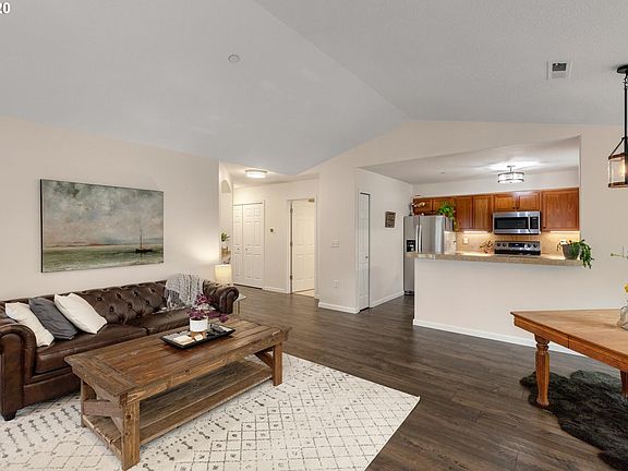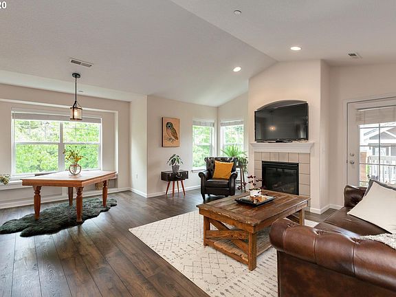Bright, open space defines this unique upper-level floorplan in Wilsonville's coveted Village Estates Neighborhood. Vaulted ceilings throughout entire home. Gorgeous kitchen w/ granite, stainless appliances, & pantry opens into airy living room w/ gas fireplace. Master suite features oversized window for excess natural light & ensuite bath w/ double sinks. Every bdrm is hallmarked w/ full ensuite bath & walk-in closets. Close to Memorial Park, Wilsonville Public Library, & shopping/restaurants.