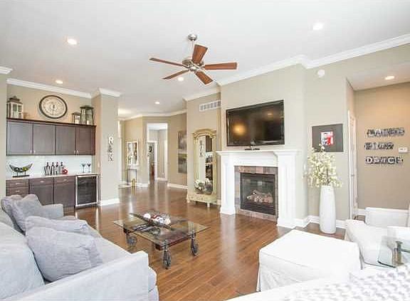 Your dream home is here. Custom built just over two years ago. 10' ceilings, totally open floor plan, hardwood floors in many rooms, upgraded cabinetry, flooring and ceiling fans throughout. Granite countertops, center island, sunroom/reading room. Walk-in tile mstr shower, walk-in mstr closet. Den or 4th bedroom in bsmt, workout room, rec room with bar. Fenced Cul-de-sac lot.