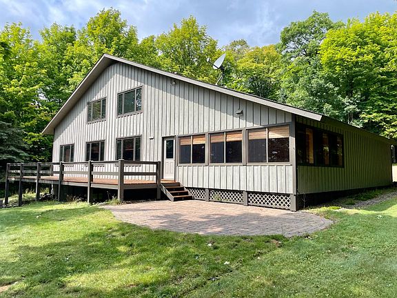 This beautiful Twin Lakes Home has Great potential! The 5 bedroom, 2 1/2 bath one owner home is spacious and well maintained. It has a large two car garage and two 28x 24 Detached garage for your toys. 200 ft. of sand and gravel shoreline only 25 landscaped steps to the water. The main level features a Wood burning stove that is roughed in for a fireplace. A very spacious three season sun room is located off the dining area. The lower level is mostly finished with a family room and workshop. North/South Twin lakes (3500 Acres) with two restaurants and is connected to the town of Phelps; and it is one the most sought-after fishing lakes in the North Woods.