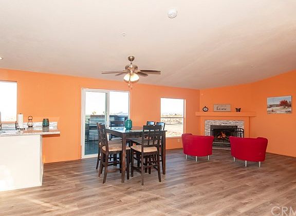 Two Homes on acreage are better than one Sunset tones and Desert views with Joshua Trees are a sight to behold The lovely main home welcomes all with handsome stained concrete entry. A bevy of views beckon as you enter. Bright Palladian window opposite sliding glass doors that lead to a private step-out deck. New wood laminate flooring has been installed throughout. A Cozy fireplace is perfect for gathering. Granite, tile and stainless steel make this Kitchen shine Large Laundry Room with plenty of room for storage. Spacious Master Bedroom with Private Master Bath with a deep soaking tub and separate shower. Nice sized Guest Rooms and Bathroom in between. Ceiling fans throughout and HVAC to keep you cool through the summers. Energy saving solar panels are installed on the main home. Inquire for more details. Tucked away on the far end of the property is the hidden gem, a beautifully remodeled Two Bedroom, One Bath Home with all of the amenities Private enclosed patio with pops of color and greenery lend charm. Light, bright and inviting Full-light French door decked out in bright blue begs you to enter and join in the fun. Spacious Kitchen Island in stylish Granite for plenty of seating. Mini split heating and air have been installed in Bedrooms and Living Room. Laundry Room is conveniently located off of the Bathroom. Live in one and rent out the other, or keep for extended family. Don't delay in scheduling to view today This one has been priced to sell quickly