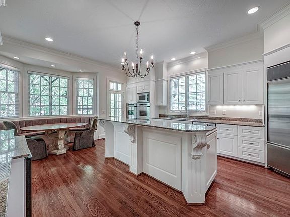- Kitchen Features: Breakfast Bar, Eat-in Kitchen, View to Family Room, Stone Counters, Kitchen Island, Breakfast Room, Cabinets White