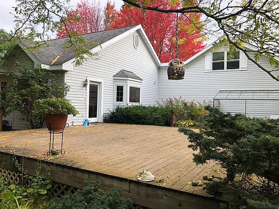 Built in 1993, this lovely home features cathedral ceilings, 4 bedrooms, 5 bathrooms, an oversized outdoor deck, and a finished 3-car insulated garage with private bedroom and bath above. The living room and kitchen area offer views of a 2.30 acre private landscaped woodland area. The main level includes an open living room, an offset dining area, a den/media room, a master suite, and a full bathroom adjacent to a guest bedroom. An indoor/outdoor dog kennel can be accessed from the yard and the hallway leading to attached garage. An invisible fence has been installed for pets. The lower floor includes 2 large finished rooms with a shared half bath. This home is in walking distance to schools, parks and downtown.