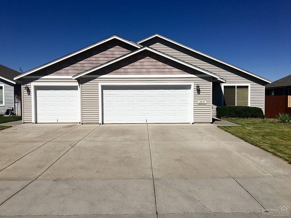 GREAT floor plan! Single level 3 bd 2 ba in NW Redmond. Light & bright. Great room & separate large dining room. Back patio w/view of Three Sisters & HUGE fenced backyard. Upgrades: wood floors, ceiling fans, wood blinds, vaults, recessed lighting. Master has walk-in closet & bath w/double vanity. Landscaped front/back w/sprinkler sys. BIG 3 car garage w/openers! On a very quiet dead end street. Room for a 26' RV in driveway. Forced air gas htg & A/C ready. Short distance to schools, Quince Park, shopping.
