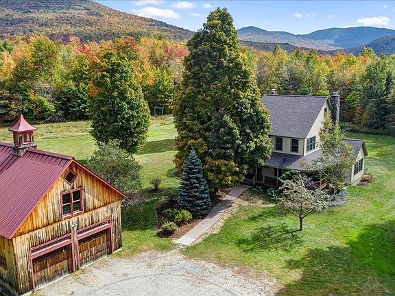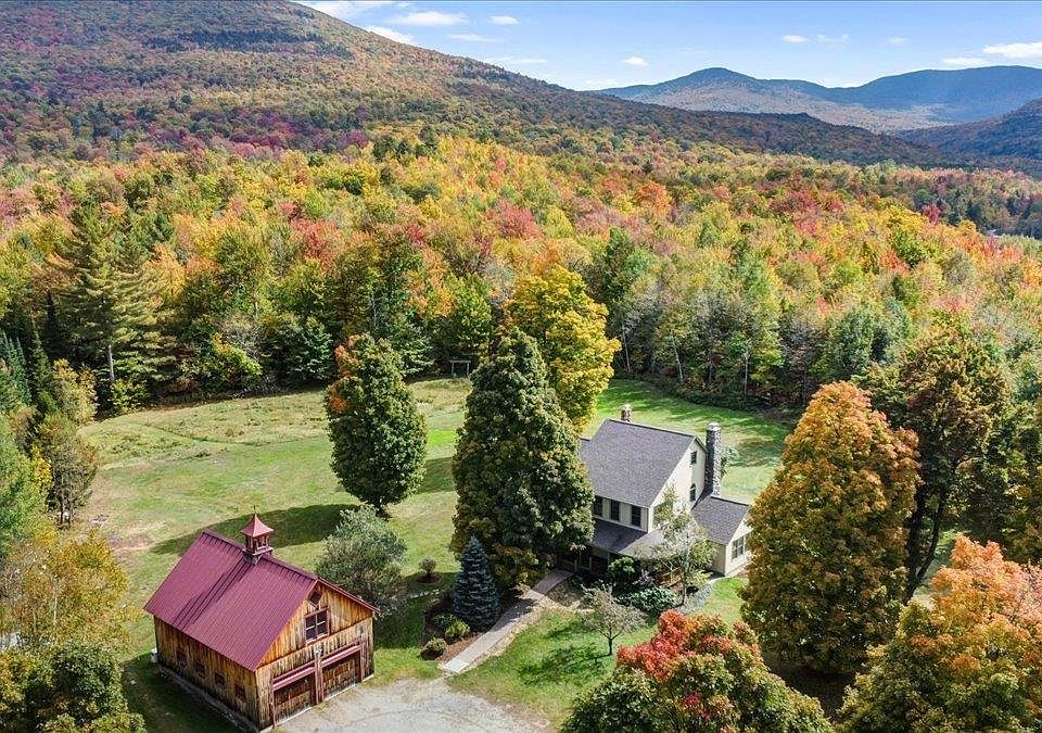 Come discover this private mountain homestead in the heart of Lincoln Vermont surrounded by over 40 acres of pristine woods, trails and views. This 4 bedroom, 2 bathroom custom built home has distinct New England details and is anchored by maple flooring and cherry wood trim throughout. The exterior showcases beautifully painted cedar siding, custom fieldstone walkways and patio, and a covered porch complete with porch swing. Upon entry, you'll immediately notice the expansive wall of southern facing windows and a sunken great room with stone fireplace and hearth. Beautifully crafted built-ins are abundant in the living room, library and kitchen. The open kitchen has ample granite counter space, maple cabinets and a walk-in pantry with laundry. A Waterford wood cookstove accented by tile is a stunning focal point in this room! Directly off the dining area is a screened porch. At the other end of the first floor, you’ll find the library with a wall of bookshelves, and an office with so much natural light. Upstairs are three guest bedrooms, a bathroom with soaking tub, and the primary bedroom with a private balcony surrounded by mountain views. There is a ladder access to a secret third floor room from the hallway – a special retreat! With a detached garage with bonus room above, a whole house generator, high speed internet, and an ample garden plot ready for the spring, this home has the land, space and amenities for you to live, work and play in the Green Mountain State.