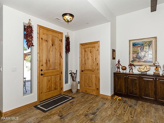 Absolutely stunning home in the exclusive Ranch at Prescott. This home is worth every penny. Built in 2017 this home has unbelievable upgrades and shows beautifully. Hand blown Mexican pendant lighting, wood beamed ceiling, Anderson wood frame windows, solid alder doors throughout, oversized master bedroom, and bath, plus a room size master closet. Living room features floor to ceiling stone fireplace and wood beamed ceiling. Jack and Jill bath with separate sinks between 2 guest rooms and convenient 1/2 bath to living area. Beautiful paved driveway to 3 car epoxy coated garage. Easy care landscape with great views of the mountains from both front and back covered patios. Home features foam insulation in walls and attic saving hundreds in utility bills. This home is gorgeous.