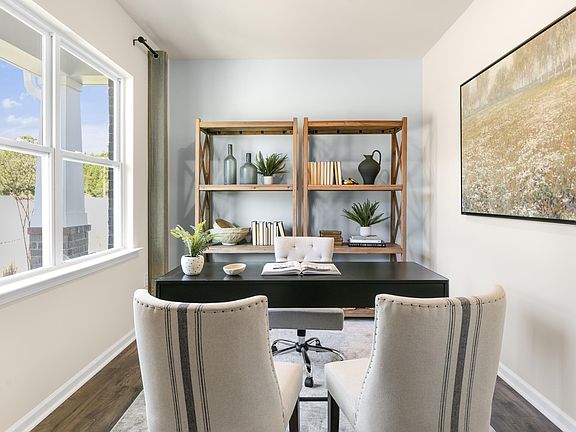 Introducing the sought after Wilmington floorplan, featuring 4 bedrooms, 2.5 bathrooms, a 2-car garage, and 2,824 sq. ft. of thoughtfully designed living space. The moment you step inside the home you will be greeted by the foyer which connects you first to a home office accented with stunning French doors, then, to a formal dining room which is perfect for entertaining. The foyer then leads into the center of the home. The open-concept layout integrates the main living area, which is a spacious family room with beautiful Revwood flooring. The gourmet kitchen, adjacent to the family room, features stainless steel appliances, an expansive center island, ample cabinets, elegant quartz countertops, and a large breakfast room perfect for casual dining.