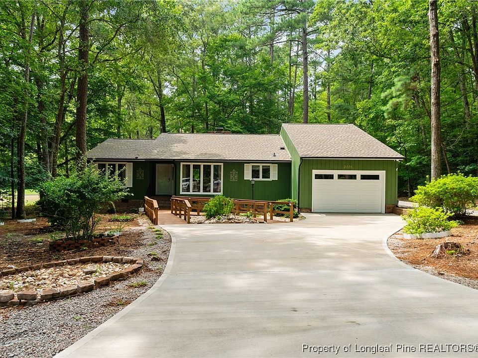 This charming one-level ranch home, perfectly nestled on a serene, secluded lot, yet just steps away from the golf course, is the perfect home.Boasting 3 spacious bedrooms and 2 beautifully updated bathrooms, this home offers the ideal blend of comfort and convenience with great storage. The inviting Carolina room provides a perfect retreat for enjoying tranquil views of the lush greenery, golf course hole #5, and leads out onto a new large deck overlooking a fire pit area and private backyard. Whether you're a golf enthusiast or simply seeking peaceful living, this property offers the best of both worlds. Home was just recently painted, new entrance decking, new roof 2020, new LVP flooring throughout main living areas of home, and more!